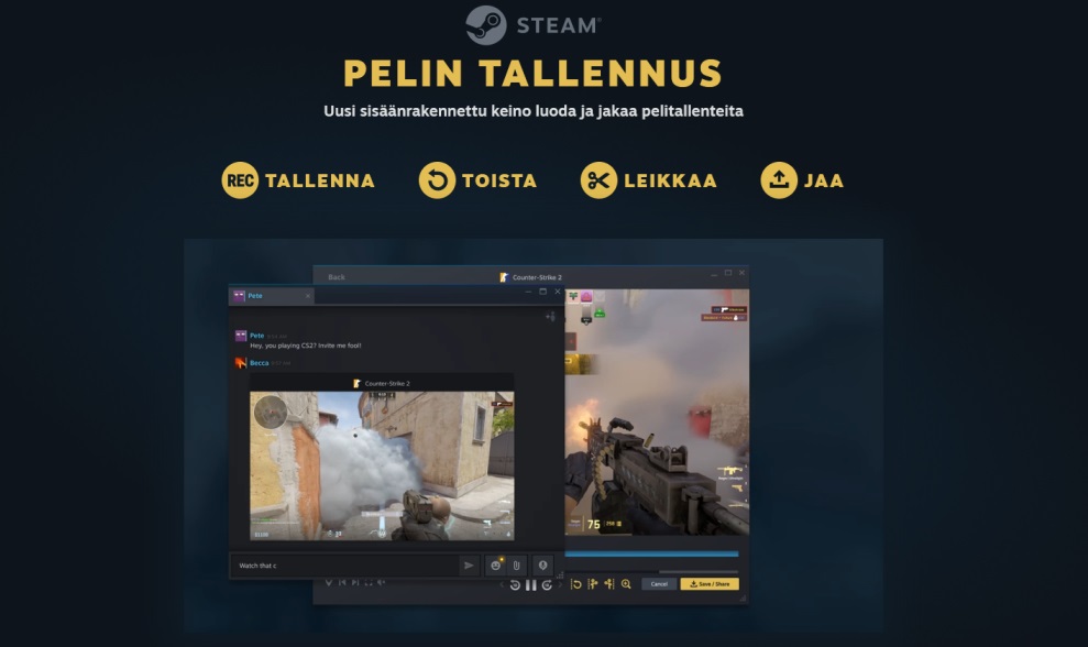 Oman pelikuvan tallentamisen suoraan Steamissa mahdollistava Game Recording / Pelin tallennus -ominaisuus on julkaistu virallisesti lyhyen beta-vaiheen jälkeen. Toimii myös Steam Deckillä.