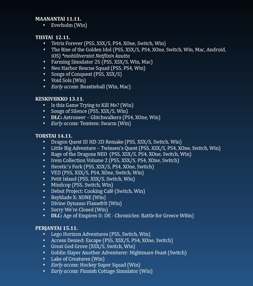 Poimintoja tämän viikon (46/2024) uutuuspelien tarjonnasta.
