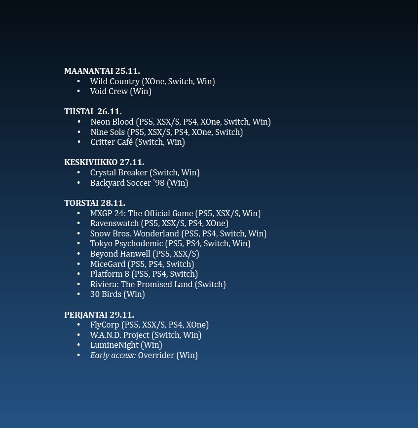 Poimintoja tämän viikon (48/2024) uutuuspelien tarjonnasta.