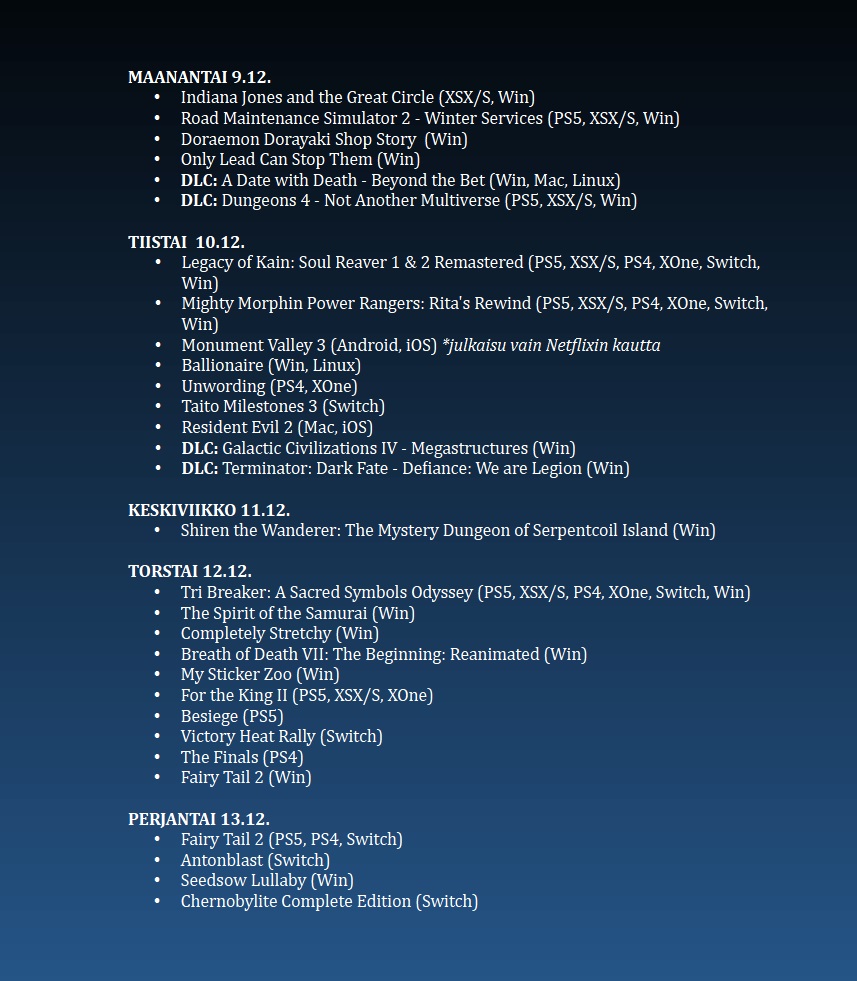 Poimintoja viikon 50/2024 uutuuspeleistä.