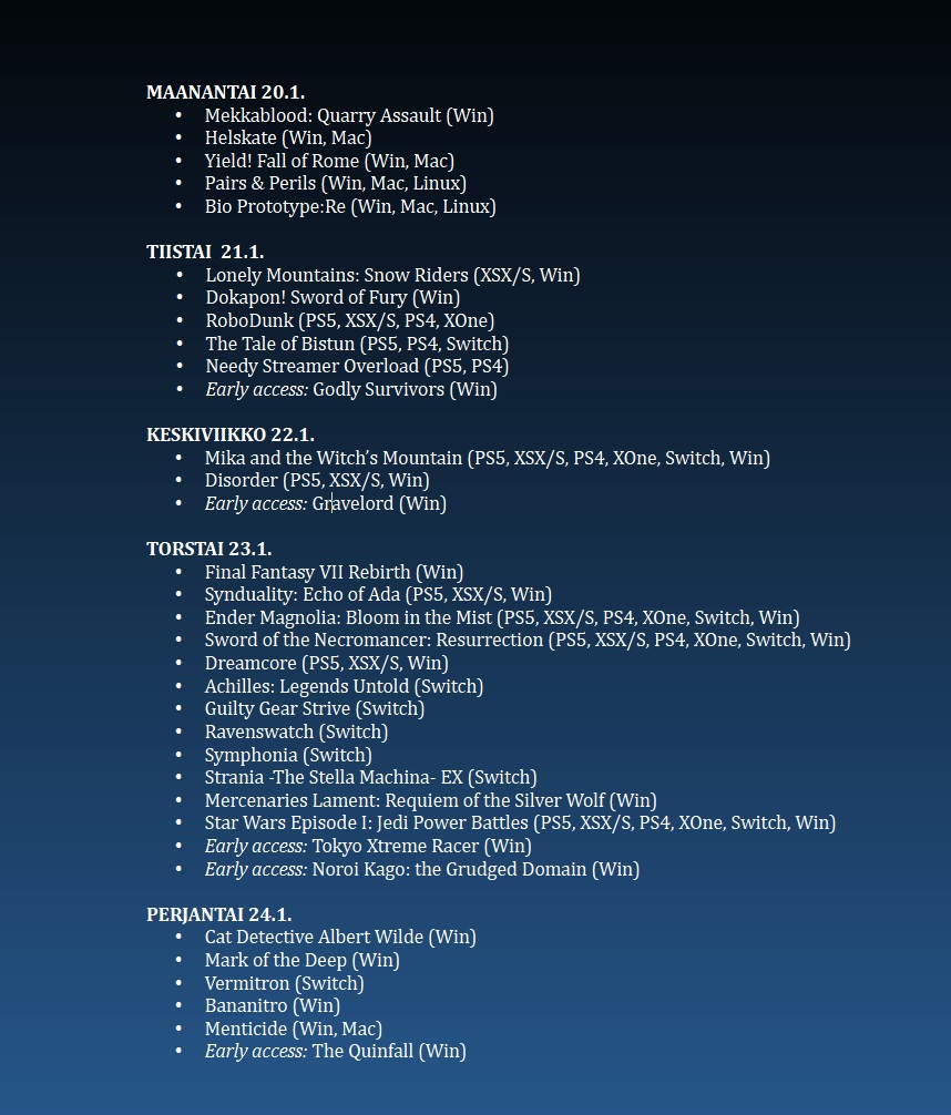 Poimintoja tämän viikon (04/2025) uutuuspeleistä.