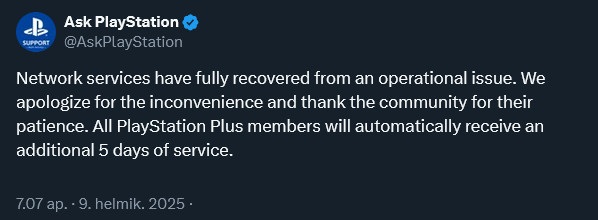 Päivitys 9.2. kello 2:44: Lauantaina PlayStation Networkia vaivannut toimintahäiriö on ilmeisesti nyt korjattu. Selvää ei ainakaan vielä kirjoitushetkellä ole, mikä johti noin vuorokauden mittaisiin ongelmiin.