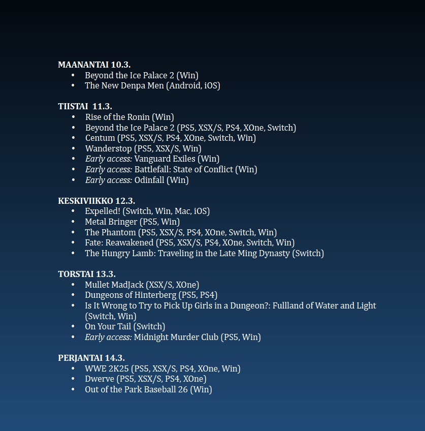 Poimintoja tämän viikon (11/2025) uutuuspelien tarjonnasta.