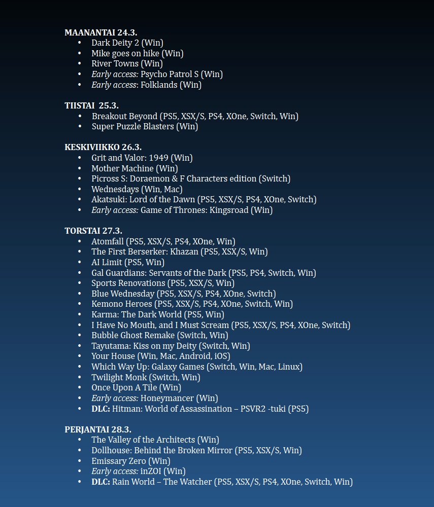 Poimintoja tämän viikon (13/2025) uutuuspelien tarjonnasta.