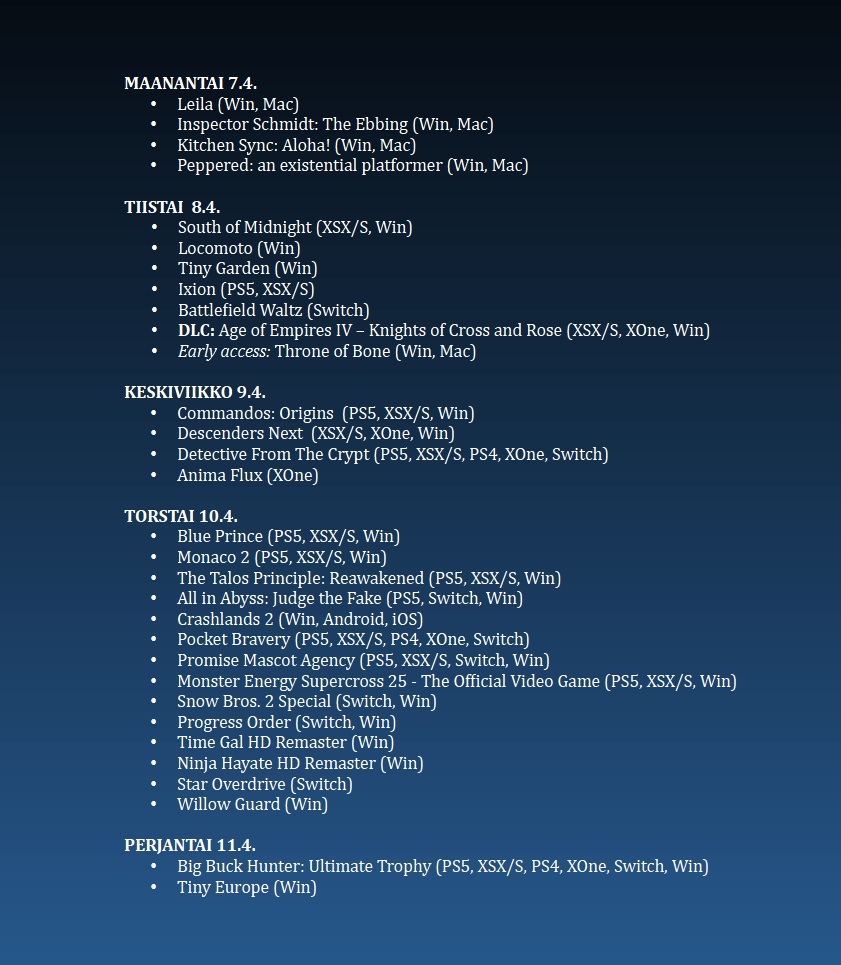 Poimintoja tämän viikon (15/2025) uutuuspelien tarjonnasta.