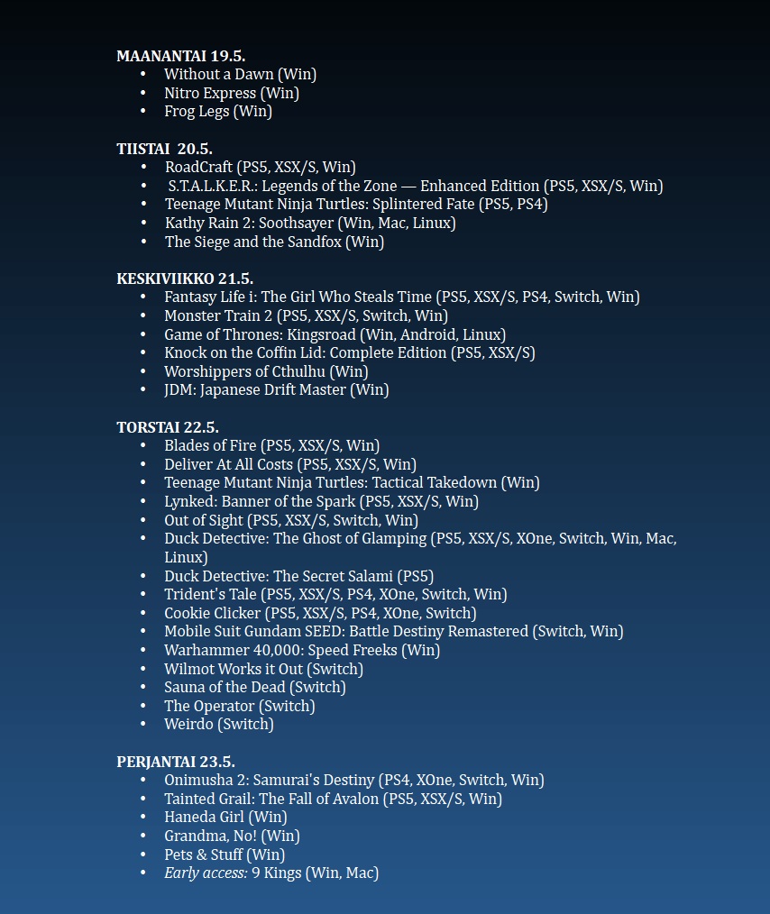 Poimintoja tämän viikon (21/2025) uutuuspelien tarjonnasta.
