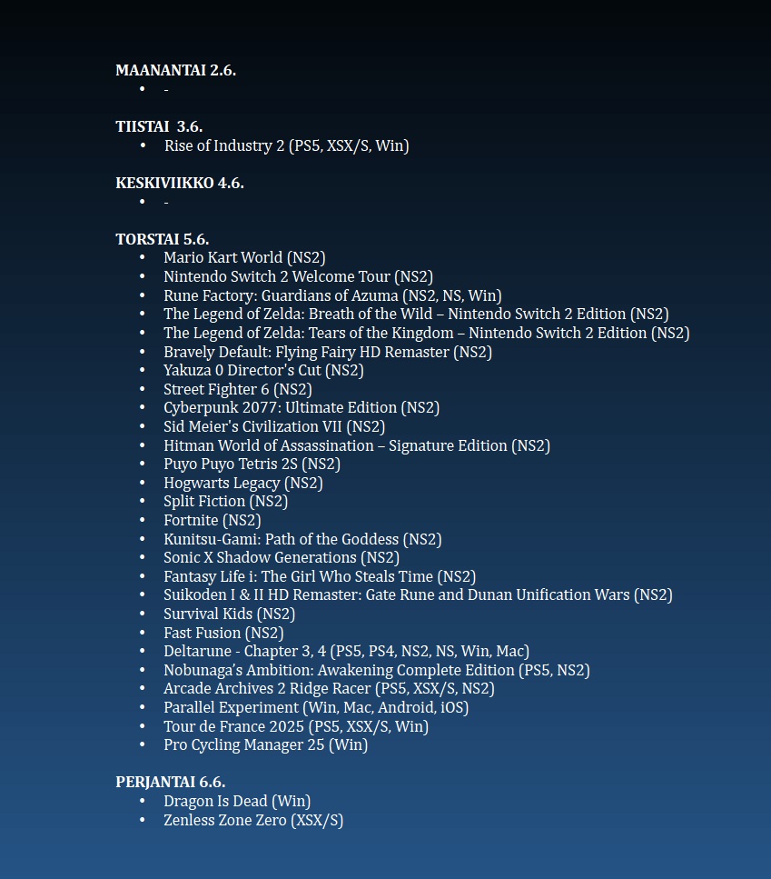 Poimintoja tämän viikon (23/2025) uutuuspelien tarjonnasta.