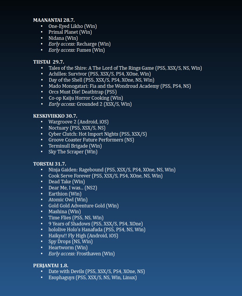 Poimintoja tämän viikon (31/2025) uutuuspelien tarjonnasta.