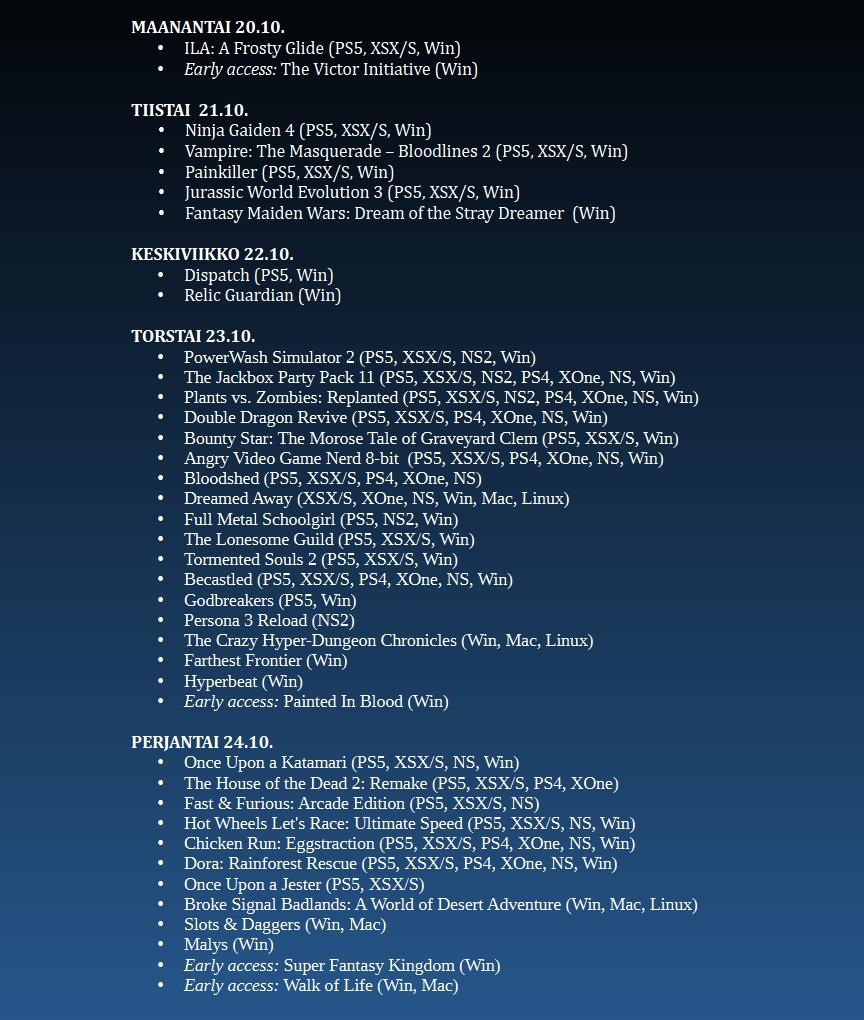 Poimintoja tämän viikon (43/2024) uutuuspelien tarjonnasta.